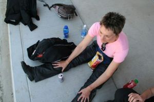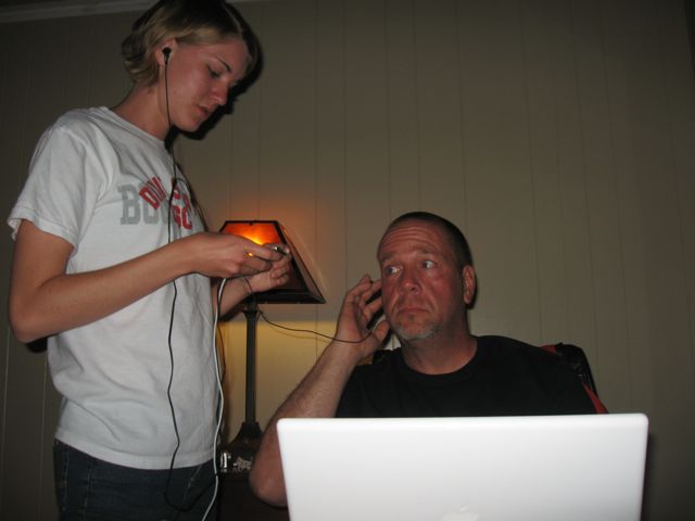 We made a meal out of bread, cheese and two cans of chicken noodle soup, and spent the evening downloading video and listening to Katie’s, um, music.