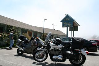 We mounted again and turned our noses south, heading back down 1. At Lucia we heard that thunderstorms were approaching, so we abandoned our plans for camping and decided to stay at our favorite place on the planet, the Cavalier Oceanside Resort in San Simeon.