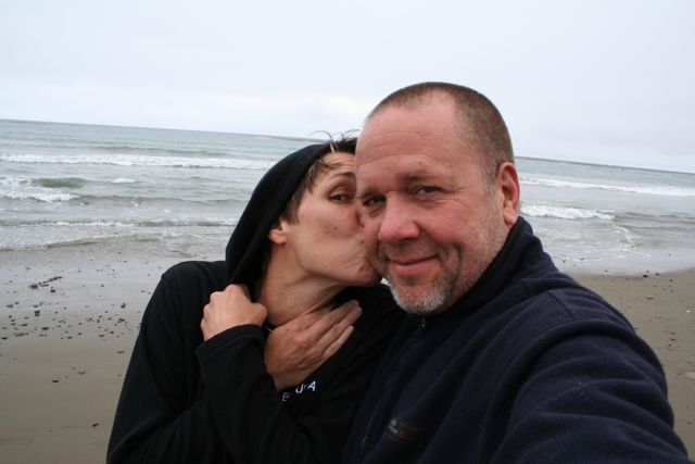 After I posted in Cambria we rode up 1 and stopped at our usual haunts: San Simeon Beach where we were married. Actually, we just made it to the pier ’cause who should we run into but the camping family from hell.