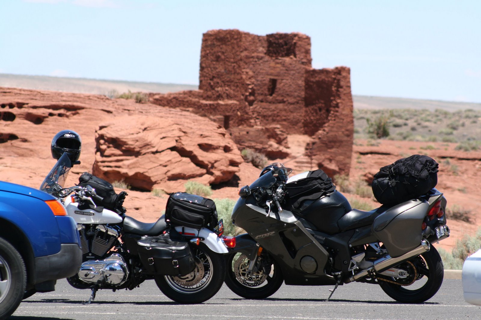 Jerome is built on the side of the mountain, a mining town gone biker destination, and damn it, I was too tired to stop and take pics. It’s a cool little town packed with bikers. The highway drops into Verde Valley and into a frustrating line up of round-abouts through which accompanying cagers wanted to race the Birds. One of the burdens of riding the fastest production Honda ever made is putting up with egos who think they can beat it, especially those mentally underfunded wheel jockeys.