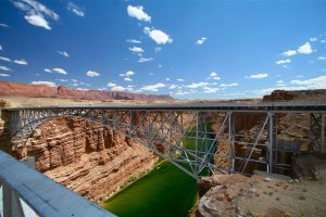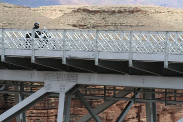 Mind-numbing straights eventually drop to mesas and the south side of Glen Canyon where 89 splits again, the main to Page and 89A to Jacob’s Lake. We stopped at Navajo Bridge for photos and to take in the contrast of the green Colorado, the blue sky and the red terrain.