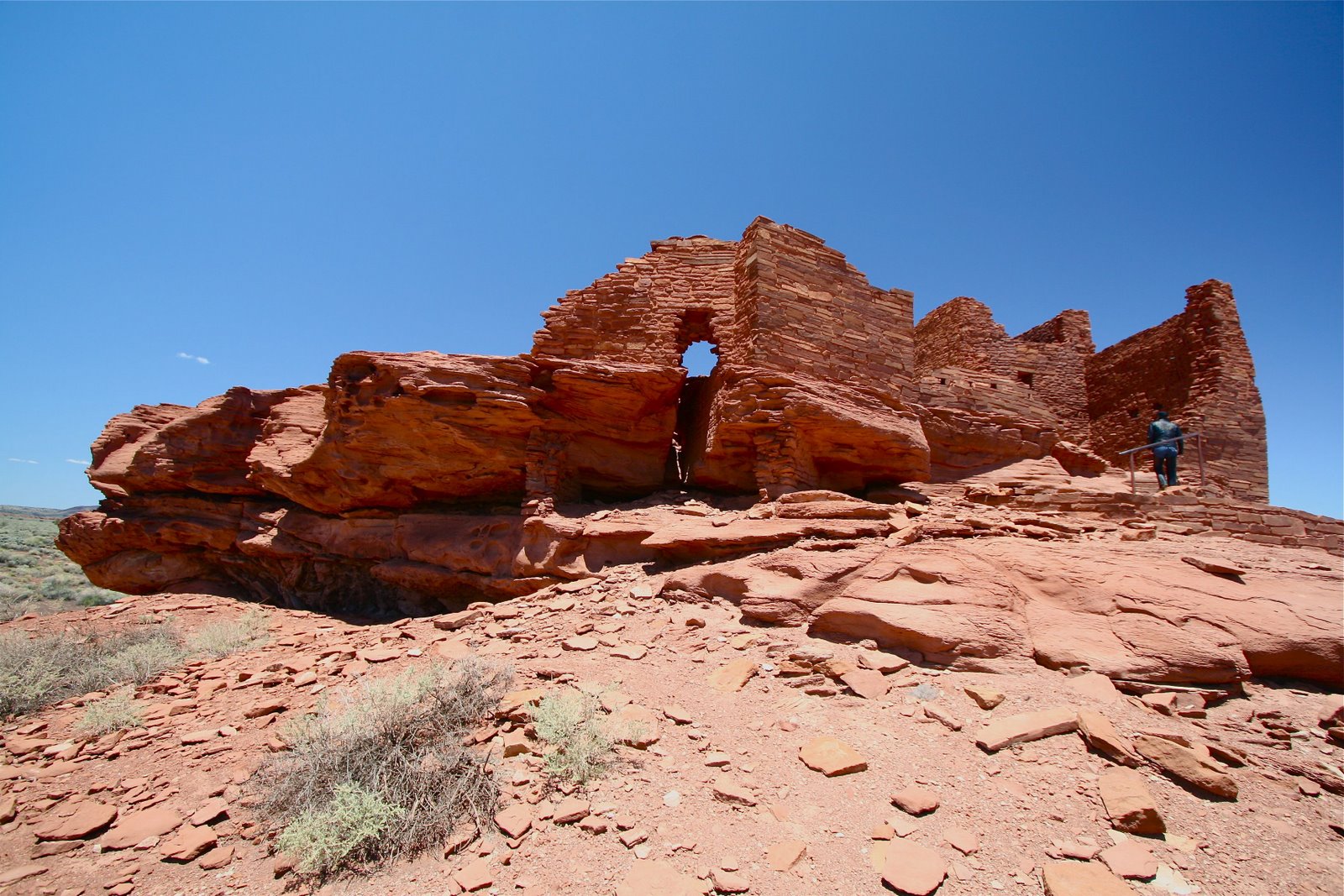 Had breakfast at Denny’s in Flagstaff and north we went thinking that we didn’t want to head that way, at least not yet. To relieve this we came across the turn for the Sunset Crater Volcano, Wupatki National Monuments, and made a 40 mile detour. Freshly paved two-laner with sweeping corners and ambling tourists at 20 MPH. It eventually gives way to 45 MPH, not to be abused though. Rangers don’t sympathize. At the middle of the drive is a turnout for a Wupatki ruin, and 800 year-old domicile of impeccable design and craftsmanship, an amazing snap shot to see that intelligence is enduring while at the same time we could be doing so much more with it when it comes to natural resources. This is a magical place where we felt the crowd of its former inhabitants.