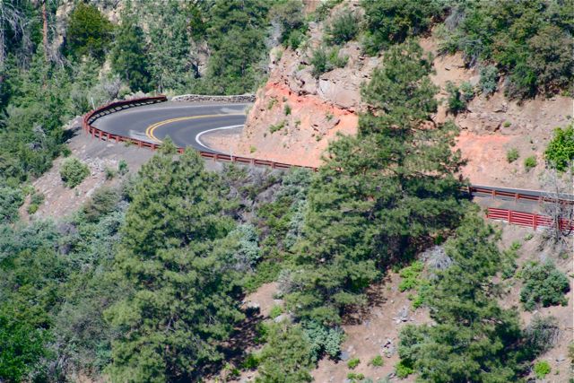 We packed and mounted 89A to the top of Oak Creek Canyon where there’s a vista turnout to view the canyon we just left.