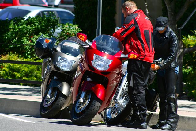 Okay, I didn’t say “dude” out loud, but I was duly impressed. So when I got my foot out of my mouth we talked about how fun it is to surprise the punks when we lift off our helmets. The kid was on an R6 parked even farther away.