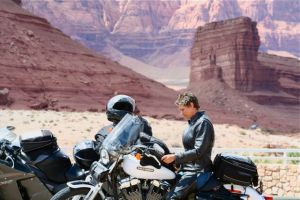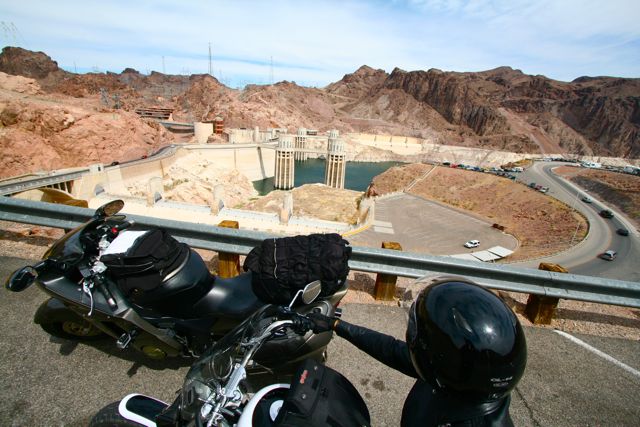 Construction traffic, and there was much of it, was handled very well. It wasn’t long before we were well on our way down 93 into Arizona. A constant 40 to 50 mph crosswind kept us on a constant cant, tilting into the wind. I took care of the chicken strips on the right side of my new rear Dunlop.