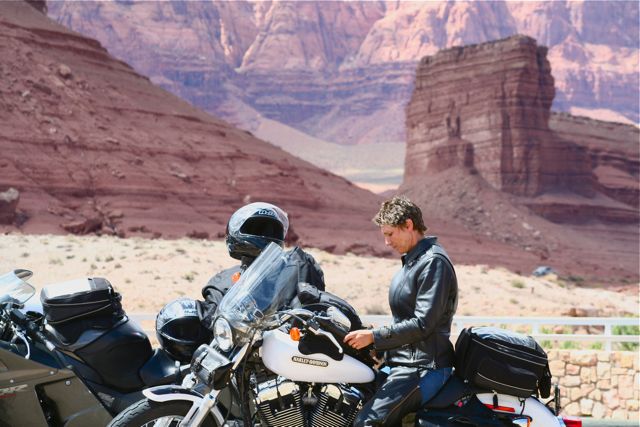Heavy sighs and we mount for the drop into Fredonia, passing a trio of novice Harley renters from Italy, tensed and fixated, making us both nervous. We hope they get to where they’re going.