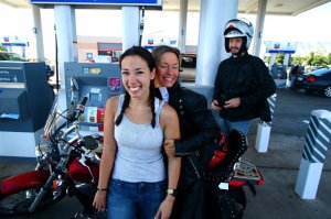 The Blackbird wasn’t made for this, so I parked her and went two up on Mindy’s Sportster 1200L. Low. We made it even lower.