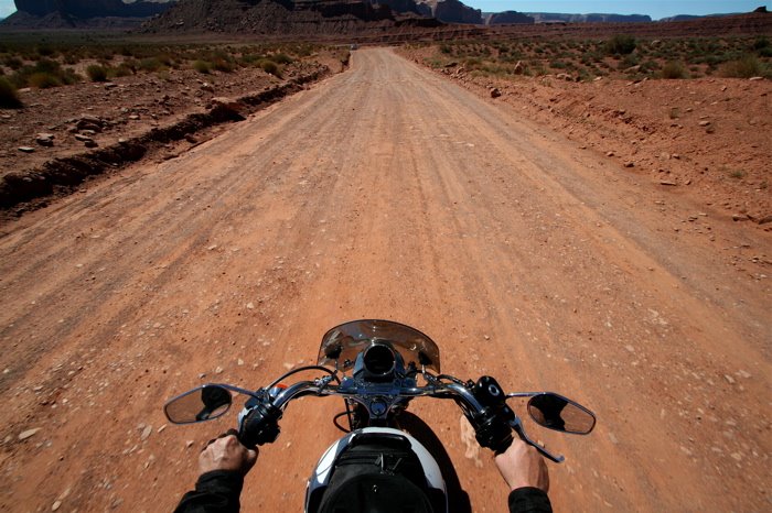 Ninety Eight out of Page is a gentle rolling undulating two-laner that begs more throttle. The land goes on so far it hurts your eyes to see the end and the colors stain the chrome. Late afternoon temps around 75 degrees, cool enough at speed to feel like you could control your own comfort. This was a memorable glide, so much so for me I refused to stop and take a photograph. We reached Kayenta by evening, not that we really knew when that was since the Reservation does or does not observe DST in a state that does not when it is. We never really knew what time it was. Not that it mattered.