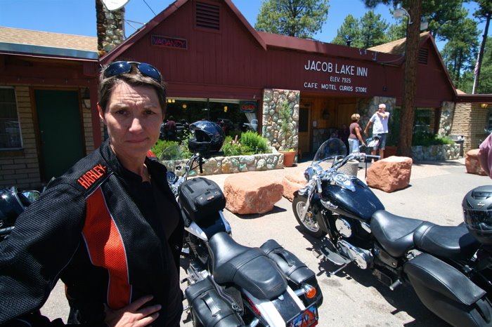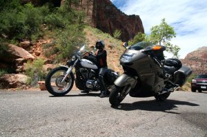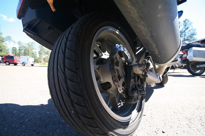 Back at Jacob Lake Lodge we retrieved Mindy’s ride and ran into a gentleman from Tennessee who rides a Kawasaki Concours 14. This guy knew his bikes and we talked on about the machines as we all do. And then I noticed the rear rubber on his ride, a low-profile car tire.