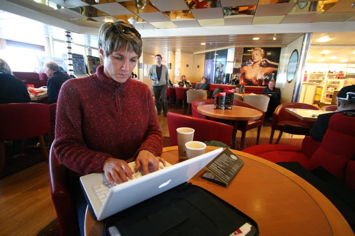 Mindy got online on board and was able to chat with the kids back home while I chatted with three motorcycle riders from the IoM on their way to Monaco on their bikes to ride the Grand Prix circuit and watch the F1 race. You can see them in the background, lucky sorts.