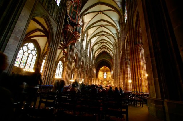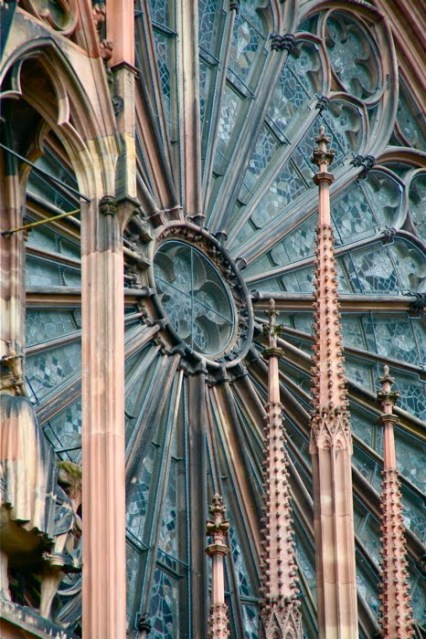 Strasbourg’s been a fickle piece of real estate. She’s bounced from France to Germany and back, and thanks to academic types and higher learning along with bureaucracies and diplomats, the city has been a bridge for these two empires as well as the seat of the Council of Europe and the European Parliament. Her residents have included Gutenburg, Goethe, Pastuer and Schweitzer. The US and allied forces bombed the hell out of her in 1944, evidenced to this day of the cathedral’s single spire. There used to be two.