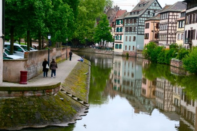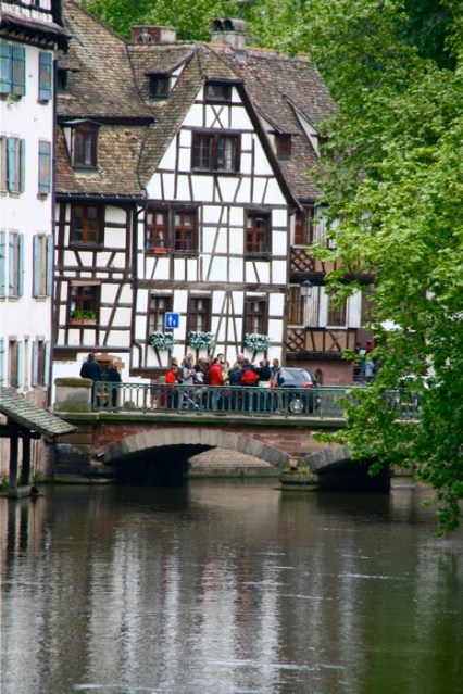 We shuffled our way to and from it, barely able to rest full weight on our tender soles. Undaunted though, we mounted the streets of Strasbourg and set out to find Alsace. Just over Pont Kuss we zig-zagged our way to Grand Rue, a former thoroughfare being converted to a pedestrian walkway. It was down one of the cross streets where I saw the signature Alsatian architecture and we walked our way to Petite-France, the heart of Strasbourg and things Alsatian.