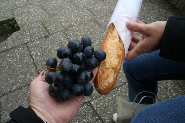 We’d walked off the boiled eggs and croissants and after our visit sought after the typical lunch, a baguette with cheese and fruit. The baguette came by a boulangerie, the grape from a corner market, and the cheese we bought from a fromagerie, or in Mindy’s words, “The stinkiest shop in the world.” And it was pretty stinky, but in a good way.