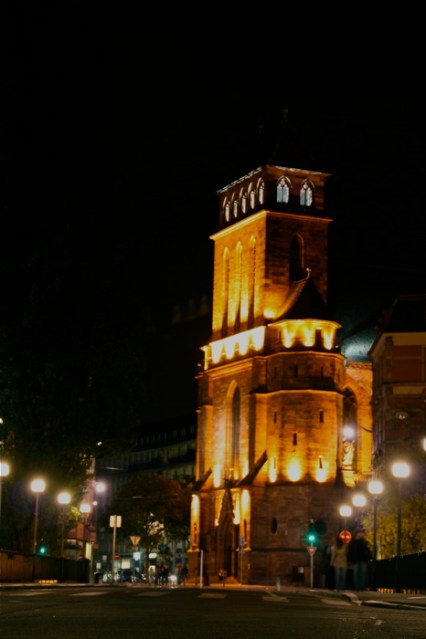 Past the locks we walked along the river to Rue Salzmann that took us en ville past a protestant cathedral and into the streets of the center of Strasbourg.