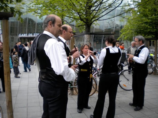 It was raining when we pulled into Gare de Strasbourg and for the first time I regretted not taking my mother-in-law’s advice of packing a little collapsible umbrella. Progress thwarted the regret though since the entire facade of the train station had been enclosed in a glass dome and the Place de la Gare had been reconstructed into a park with traffic, pedestrian and train connections all subterranean, keeping us mostly out of the weather, but away from that first sensory input of France’s greatest secret. Part of the dome is seen behind these Scotts.
