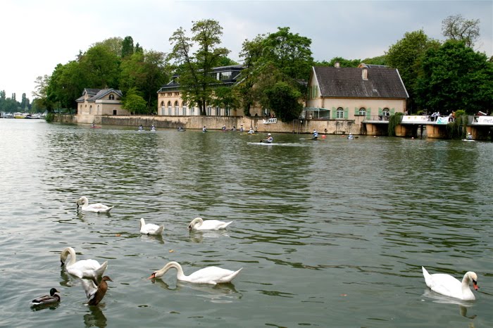 We back-tracked through the park and made our way down to the bank of one of the diversions of the river Moselle. We walked along first admiring swans and then competitive kayakers, a whip-lashing juxtaposition for me still ruminating in things ancient.