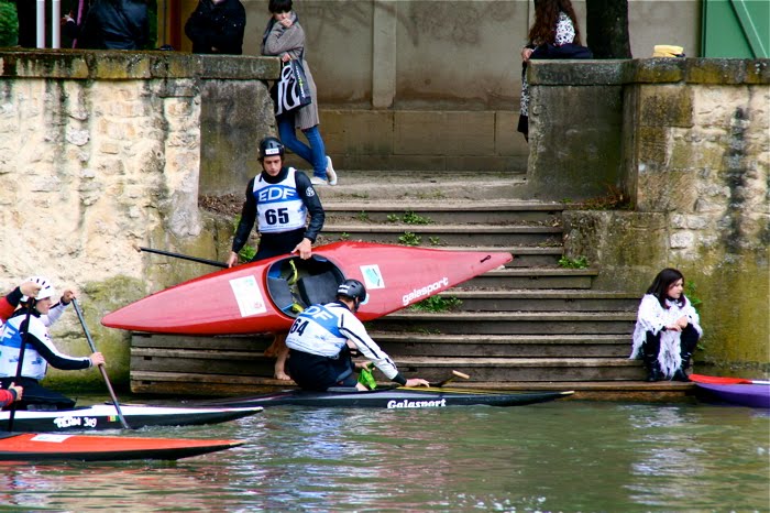 It surprised us both. Between the Moselle’s division is a rivulet of some considerable rapids upon which is a competitive kayak circuit, world renown no less. And we had the traveler’s good fortune to be there on the day of a competition.