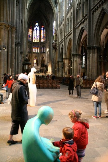 Inside St-Etienne was a display of a modern sculpture depicting the five senses. The image depicts only two, hearing and olfactory. Sight is represented in a suspended, or rather hanging statue with its head cocked to the heavens resulting in an image that’s more disturbing than inspiring since it looked more like a suicide attempt.