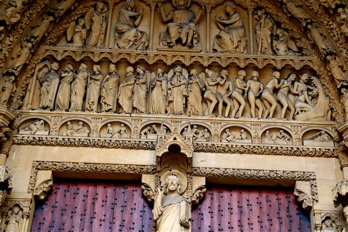 The very jaws of hell are swallowing up the naked wicked while the saints transcend past Peter’s gate-keeping. Holy cow. Wait! That’s it! Holy Cow (my apologies to Hindus and Catholics alike, I just thought that was funny, something to offset the hebegebees from the ornamentation above the main doors to this house of worship).