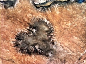 Other basins were etched with fissures leading into the basin to catch more water like this heart-shaped basin.