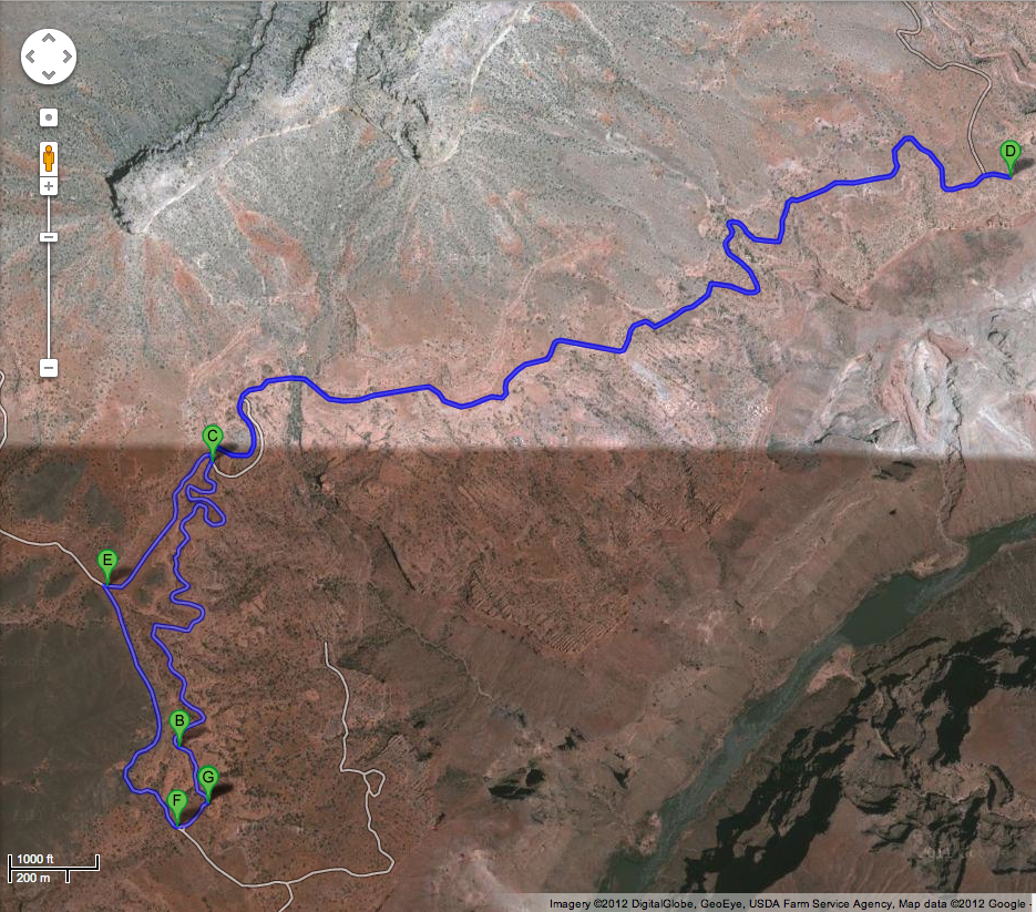 As a loop it’s a three mile stroll, but we continued on the old double-track to get to the canyon’s edge, giving us a different view up-river.