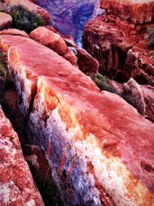 After breakfast and dishes we hiked an old Jeep trail that took us around the Toroweap bluff to an edge of the canyon.