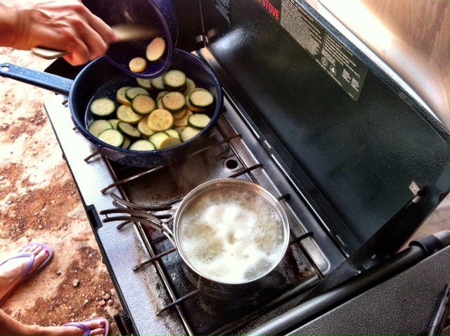 We broke-in the kitchen with grilled chicken, sauteed squash and rice. A real meal not consumed out of a bag.