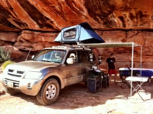 We arrived late afternoon and established our camp. In about ten minutes we had it all up, including a shower/changing room. The roof-top tent goes up in seconds, along with the awning. The kitchen deploys with pedestals for stoves or coolers along with a canvas wash basin under a removable work surface.