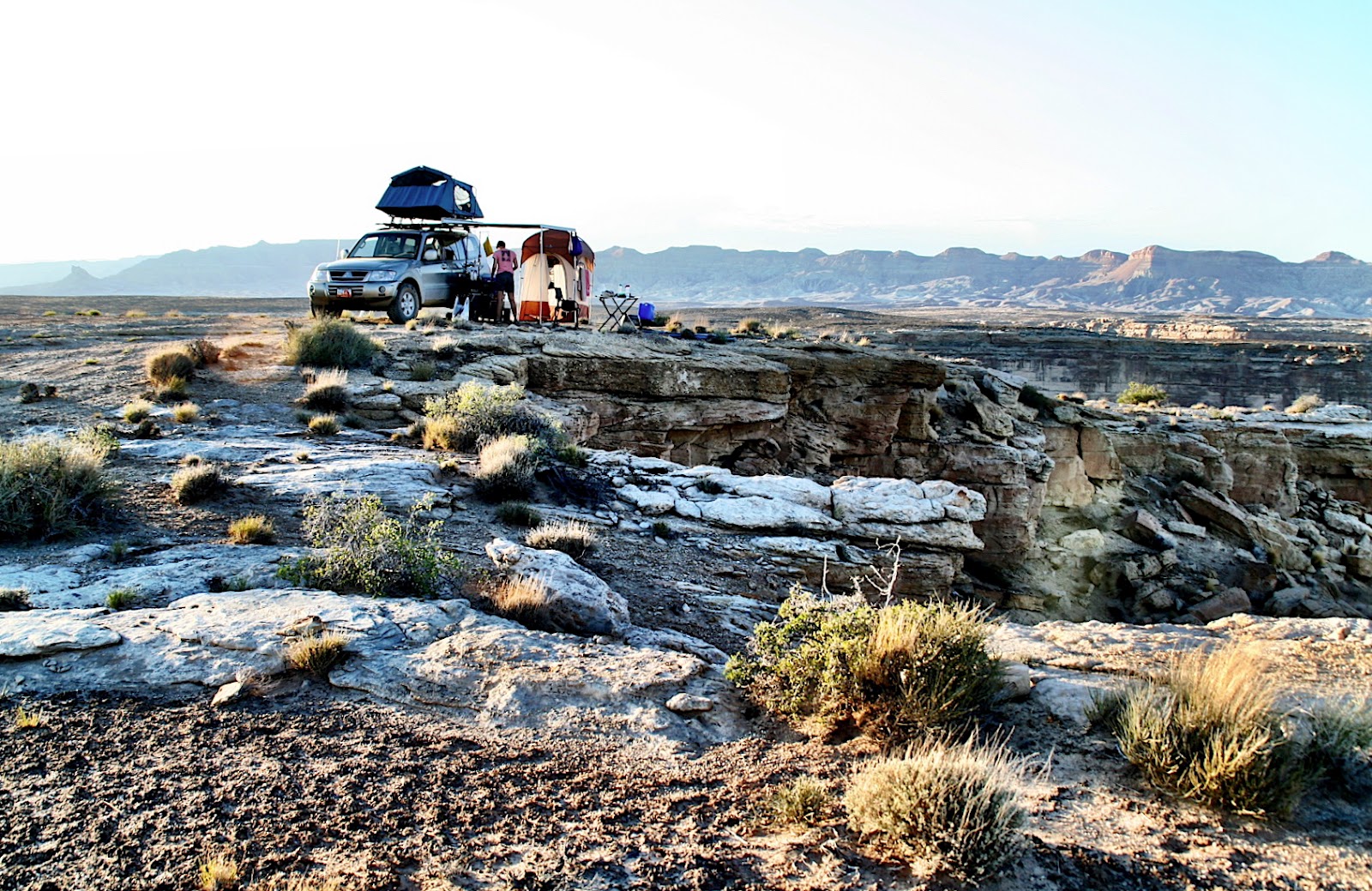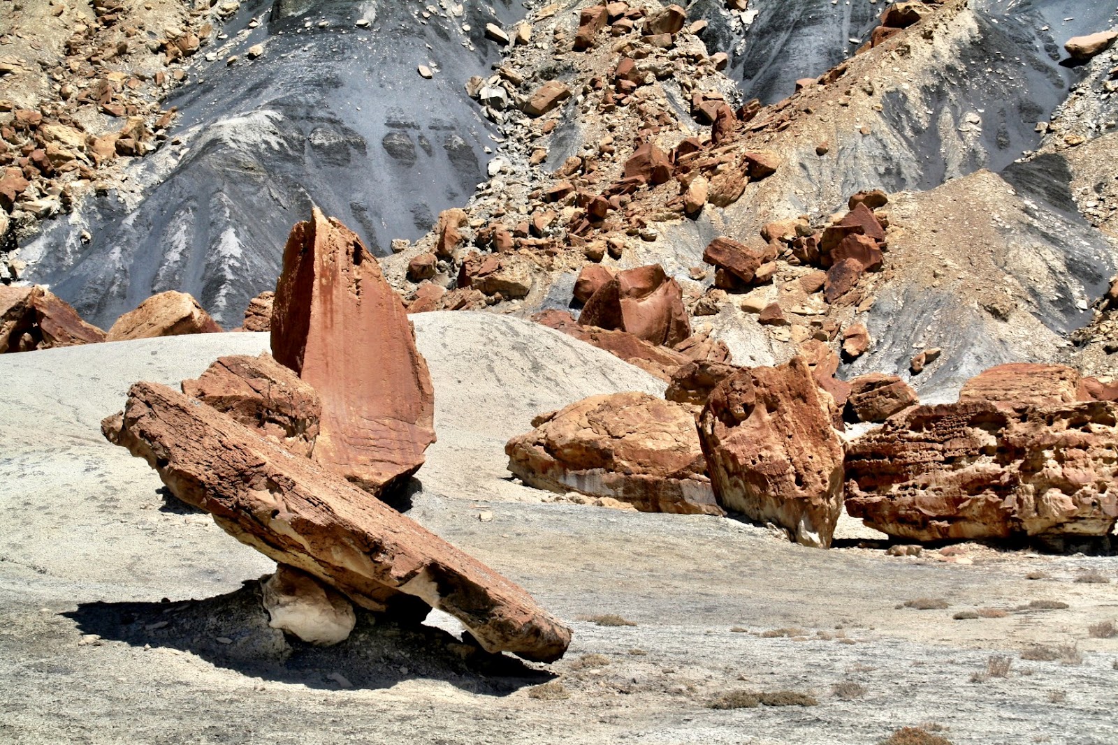 We descended out of the mesa and down to the moonscapes of the crustaceans, gray sandy surface inhospitable to anything organic save itself.