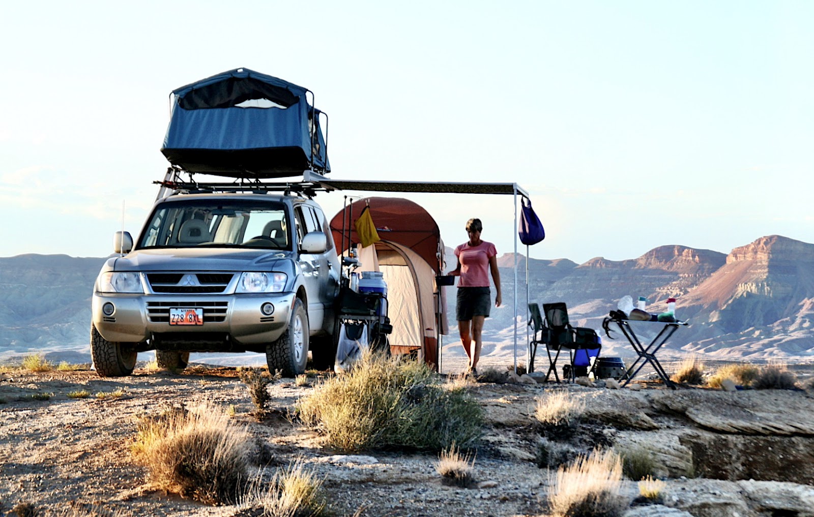 Mindy was able to get off work earlier than expected giving us a head start and putting us in Escalante a couple of hours ahead of time. The plan was to camp at Escalante Outfitters, a barely-an-acre parcel set up for tents, not RTTs. So we camped in the parking lot, fully warned that a wedding party was scheduled for that evening.