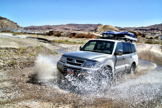 We air down to 20 psi on the track smoothing out washboards and increasing tire contact patch. With the Montero’s limited slip differential this combination seems so far unstoppable. I’m certain we’ll find its limits another time when we’re better prepared for it.