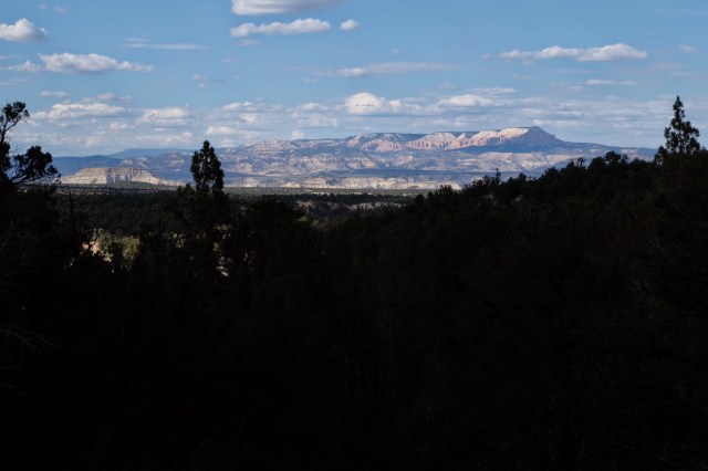 The Skutumpah Road then winds up a ridge where a more pleasant surprise awaits, a vista of Kodachrome Basin and the southern part of Bryce Canyon.