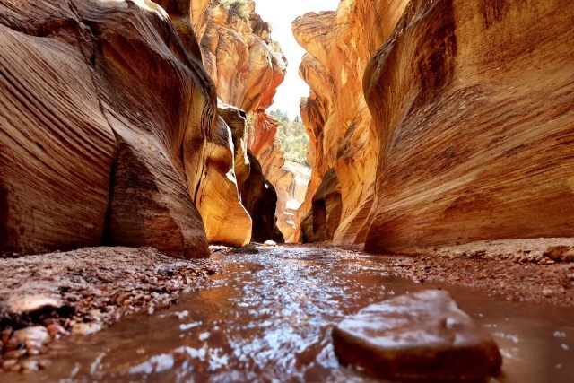 Willis Creek descends into a second slot along the trail creating a beautiful little geological feature along the way.