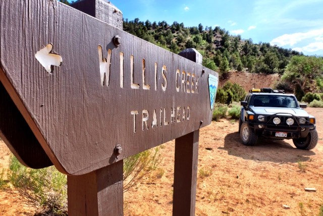 The trail head is across from the parking area and kiosk for Willis Creek Canyon.