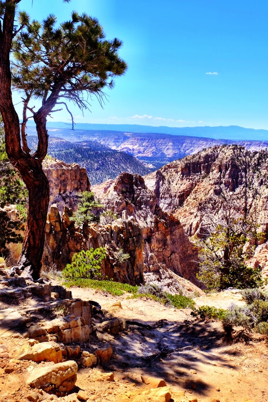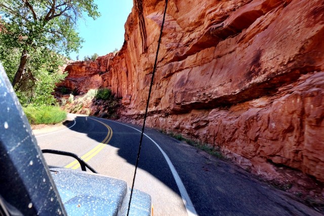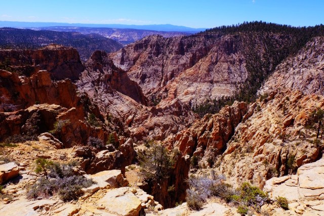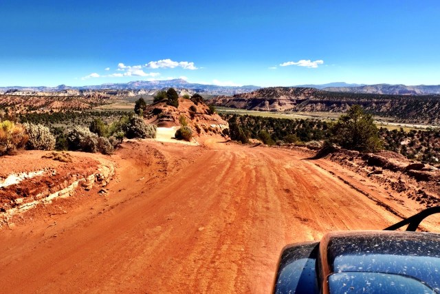 About four miles from Blue Spruce the road’s view opens up to the Box-Death Hollow.