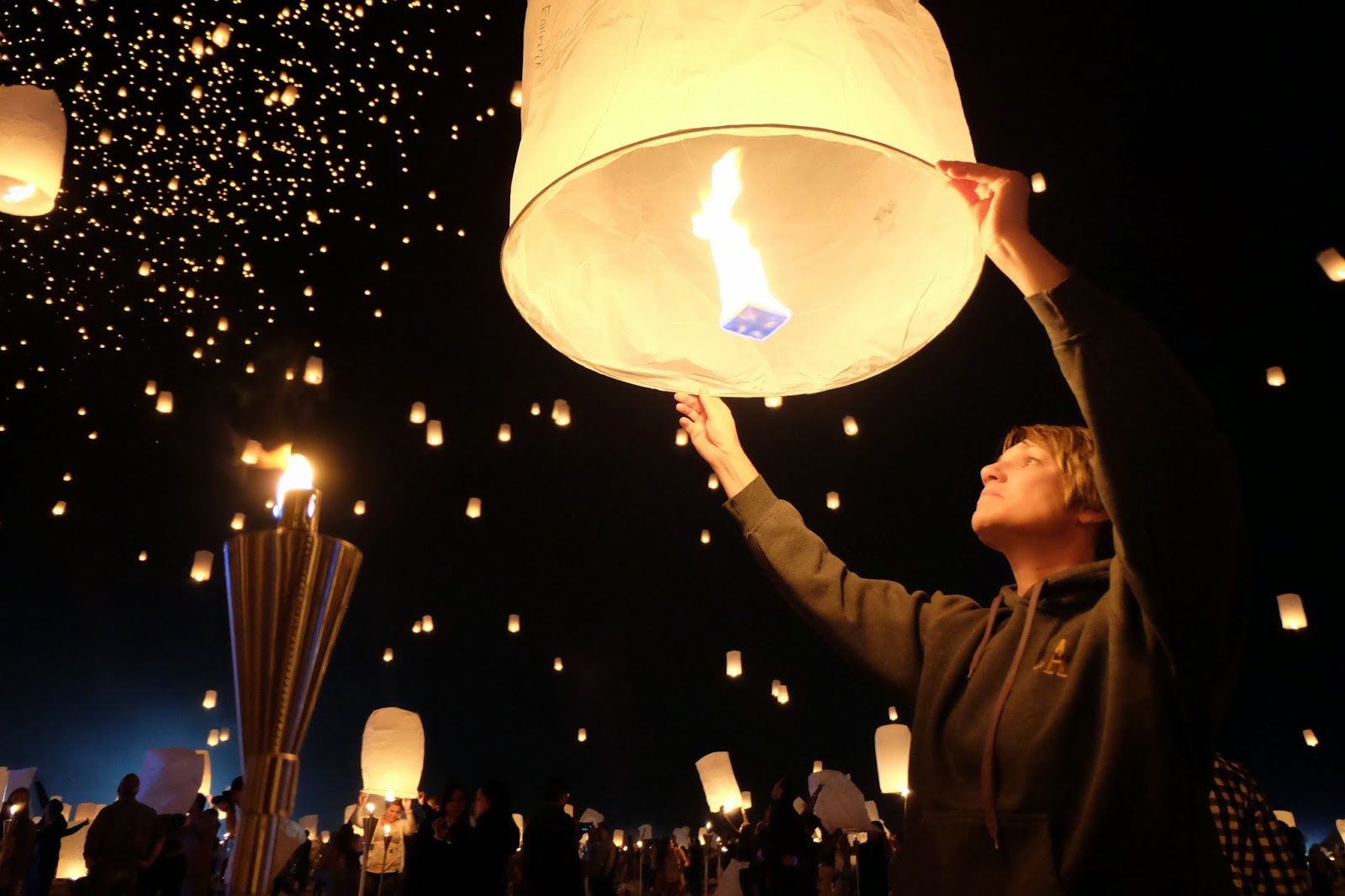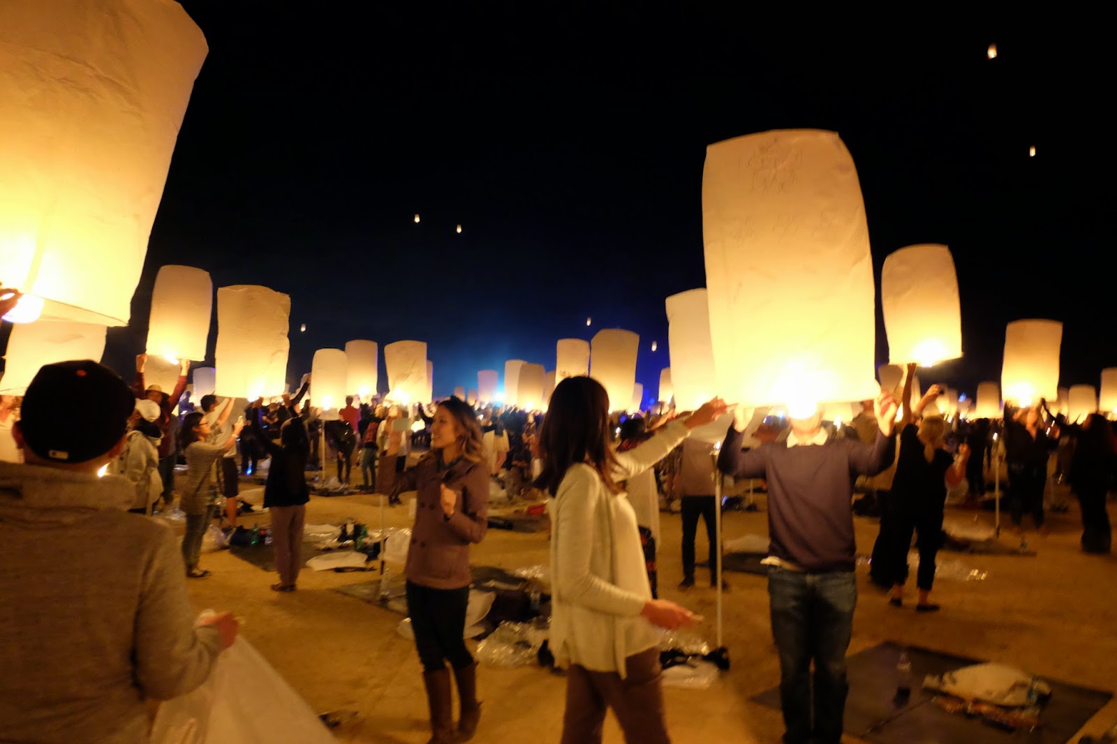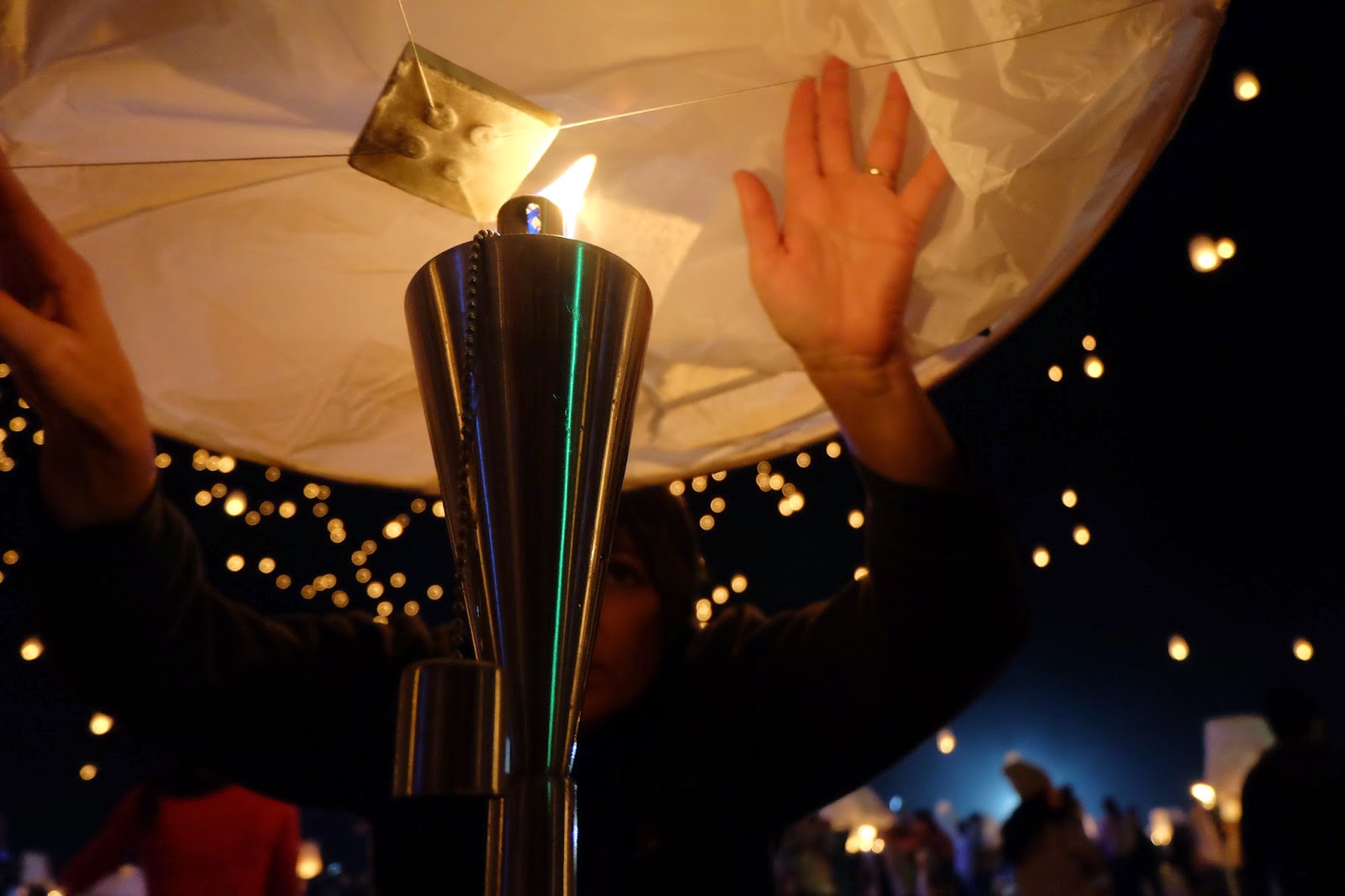 Once most of the participants had reached a point or preparing their lamps, they were, for the most part, released at the same time. Participants had two lanterns to release and the night sky kept filling with light over the next half hour.