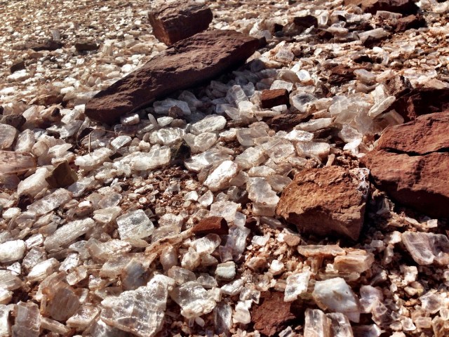 This road continues south across the Utah/Arizona border, just past a ranch and a sign indicating a direction to the Navajo Road. It’s the road seen in the vista from the bear formation. Stay to the left and continue a few miles where you’ll come upon a hill made of glass called by the locals, Sparkle Mountain, a bit of hyperbole on both accounts.