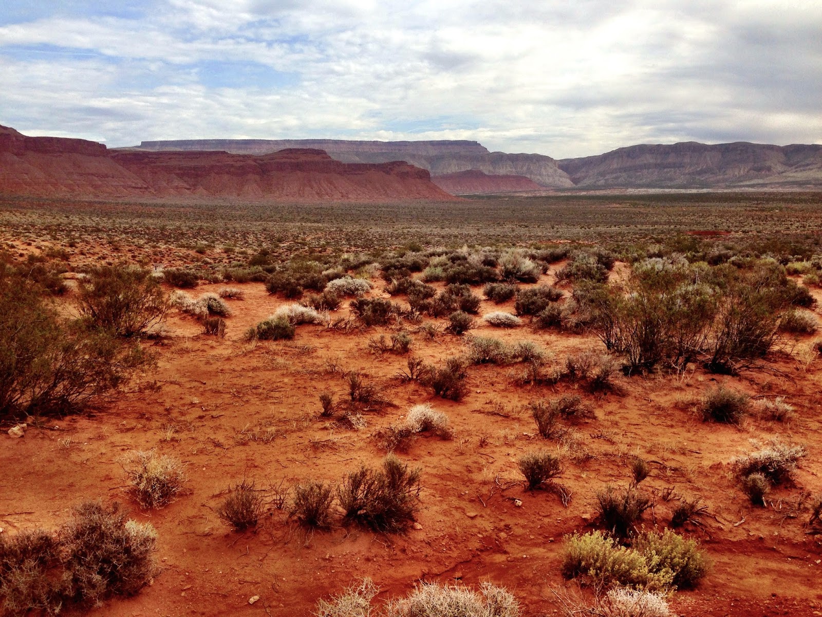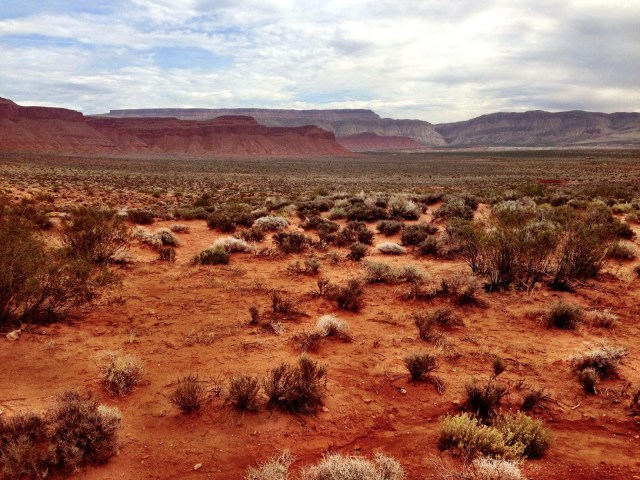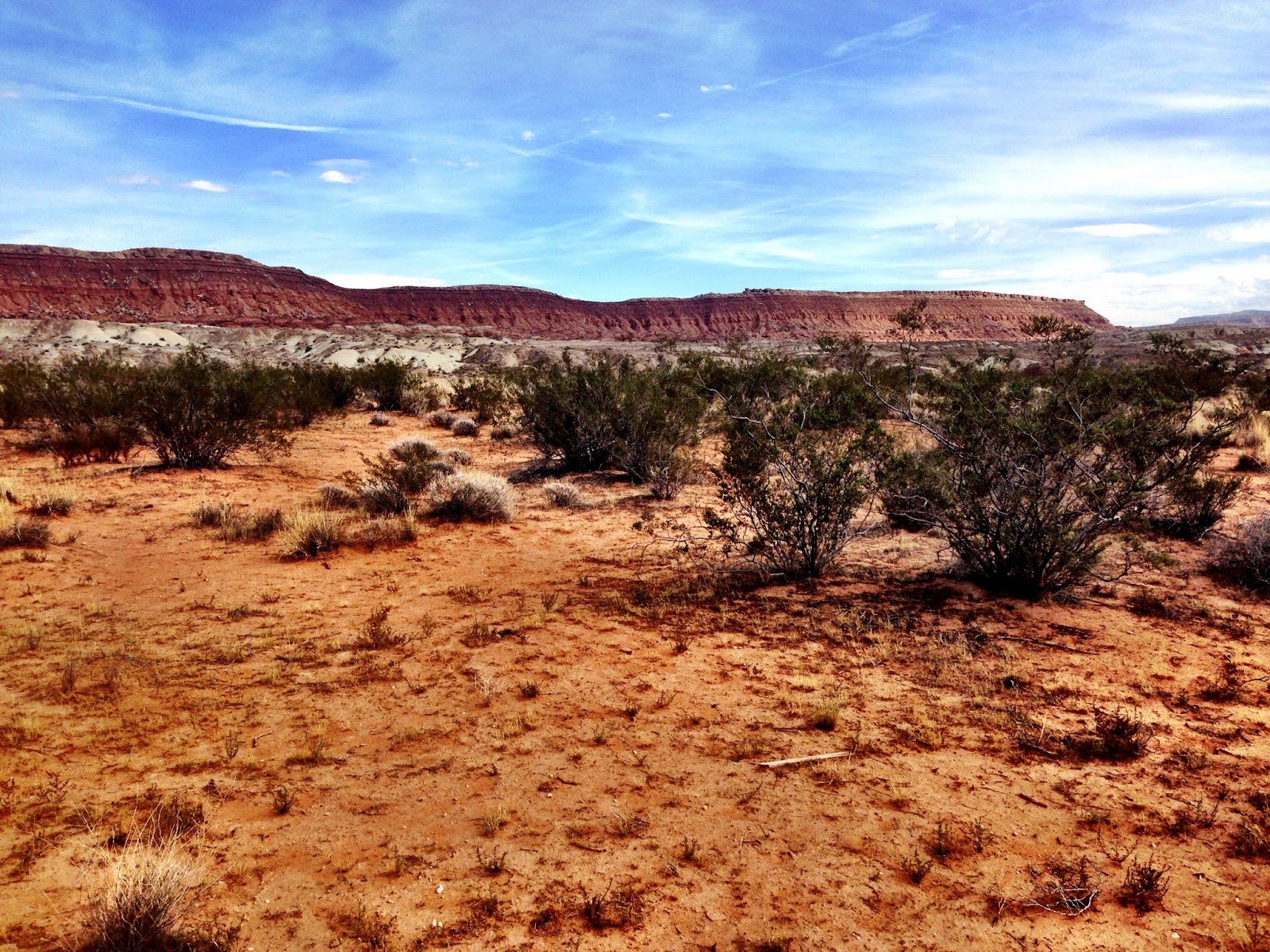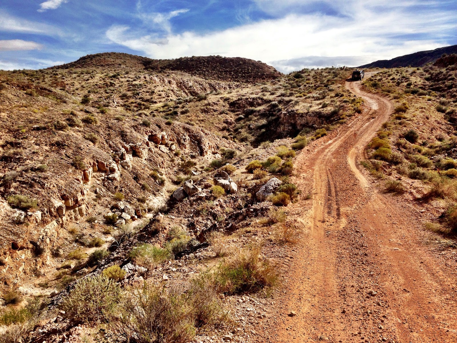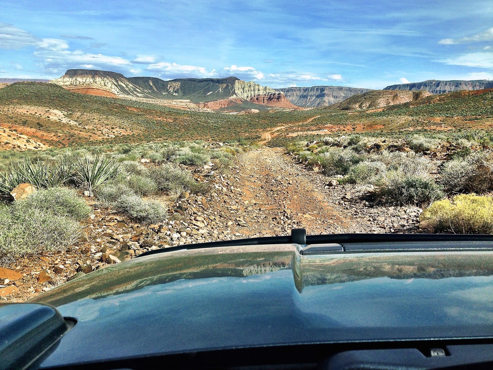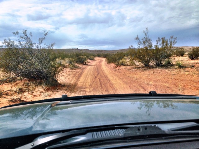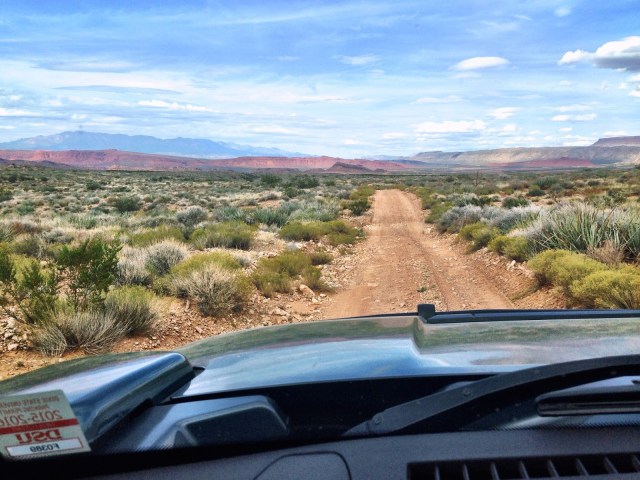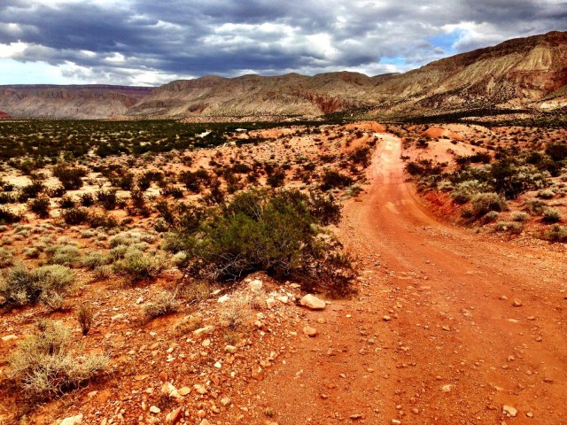There’s a particularly long riverbed crossing, a tributary that can get violent and fast in a flash flood, on this route just before it mounts up along the base of the Plateau. It’s the same vein that feeds the river at Fort Pearce. If you’re in the very unfortunate position of making this trip during a flash flood warning, turn around and make the trip back.