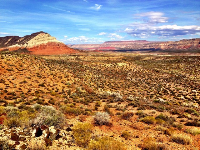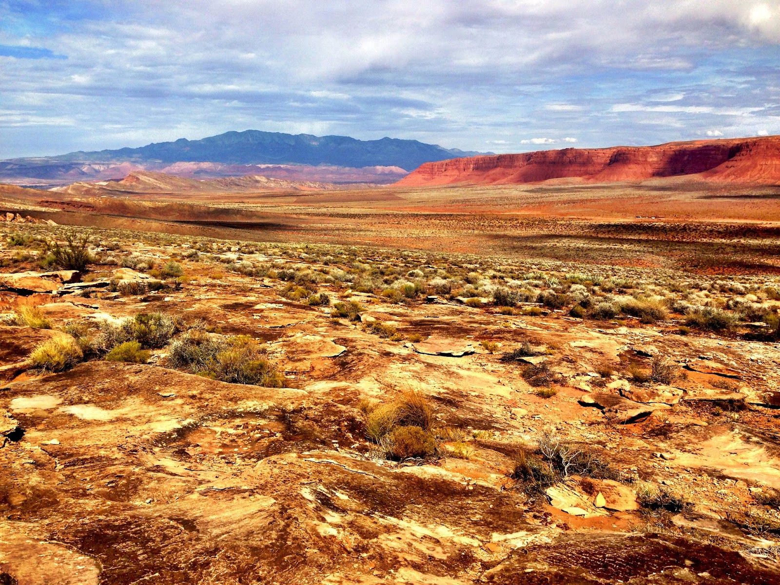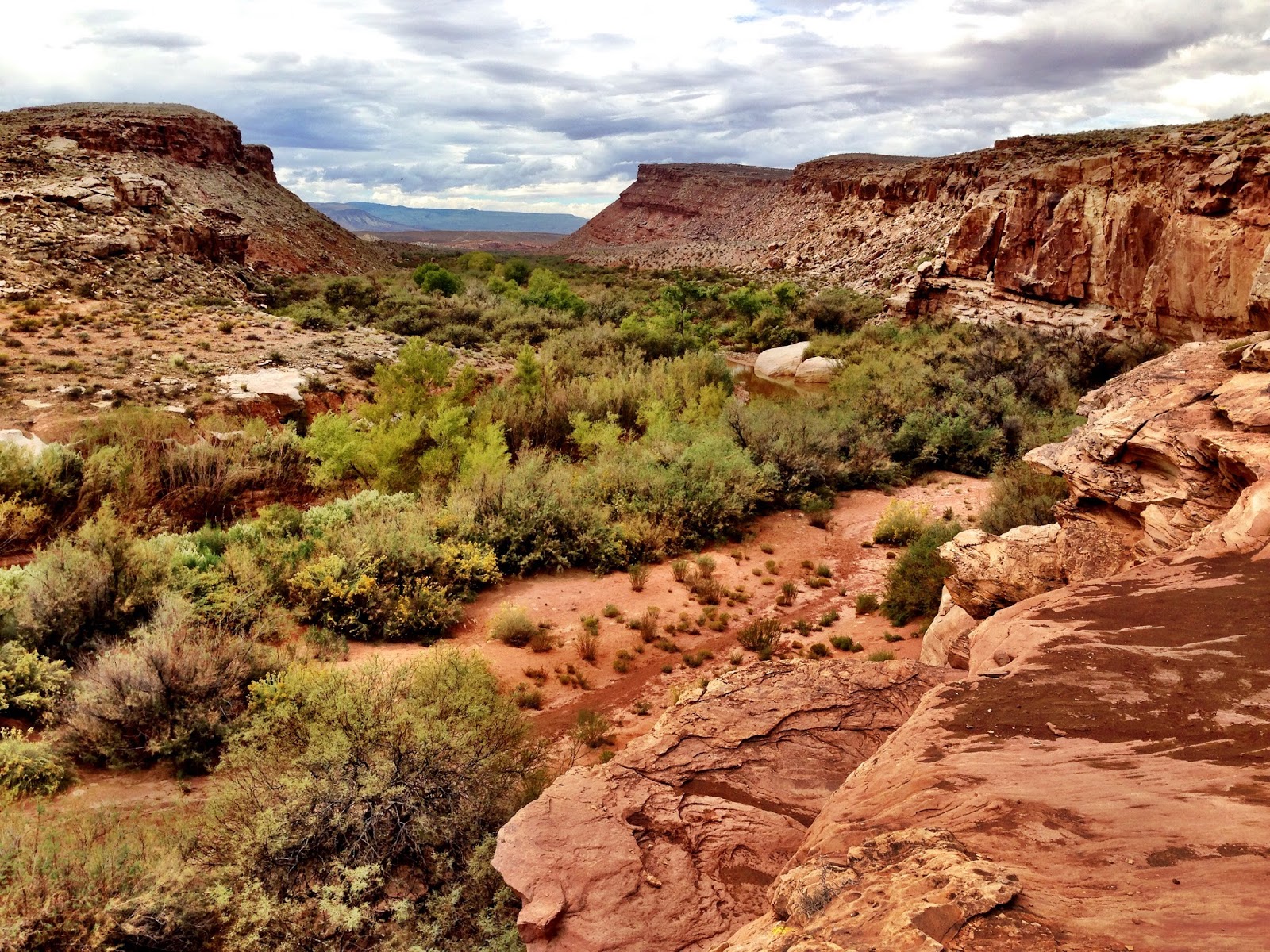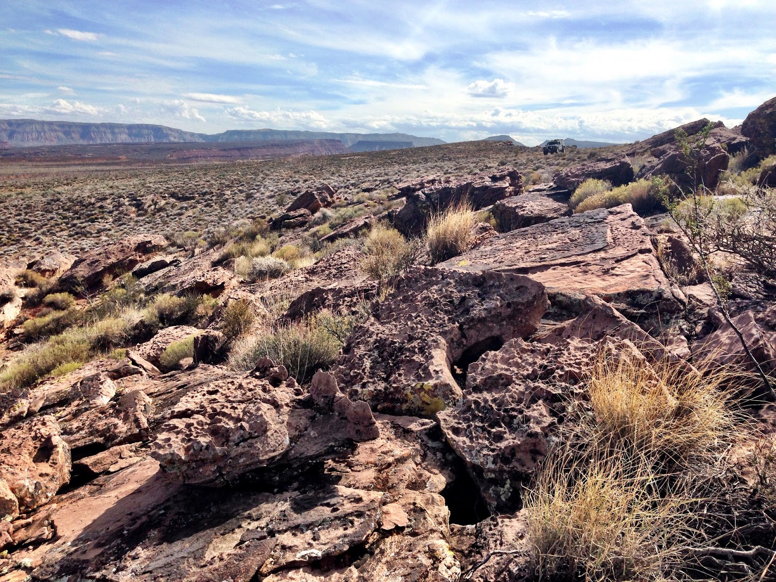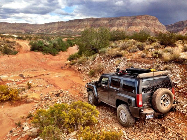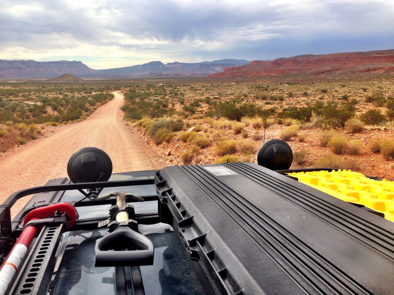 There’s a particularly long riverbed crossing, a tributary that can get violent and fast in a flash flood, on this route just before it mounts up along the base of the Plateau. It’s the same vein that feeds the river at Fort Pearce. If you’re in the very unfortunate position of making this trip during a flash flood warning, turn around and make the trip back.