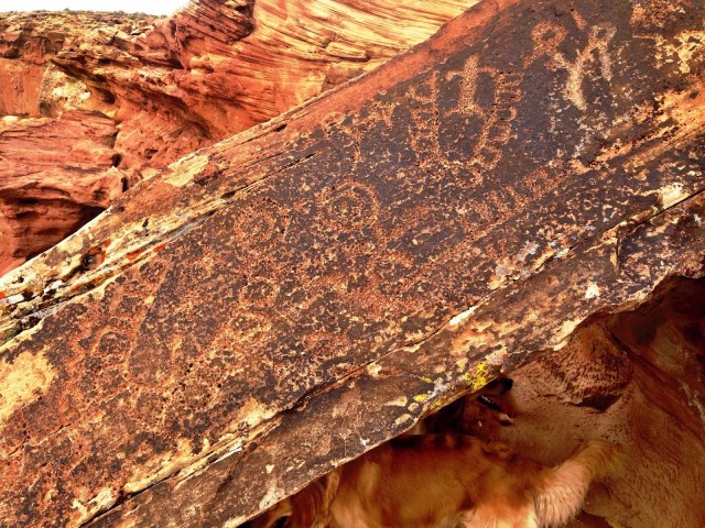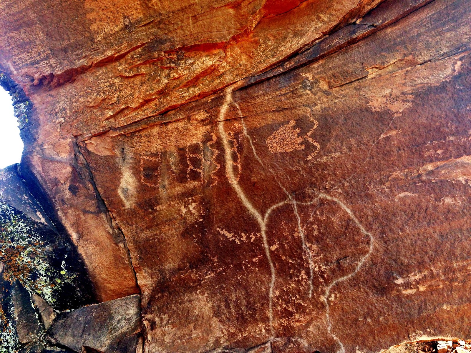 And a few yards beyond is the bear formation with these petroglyphs on two sides.