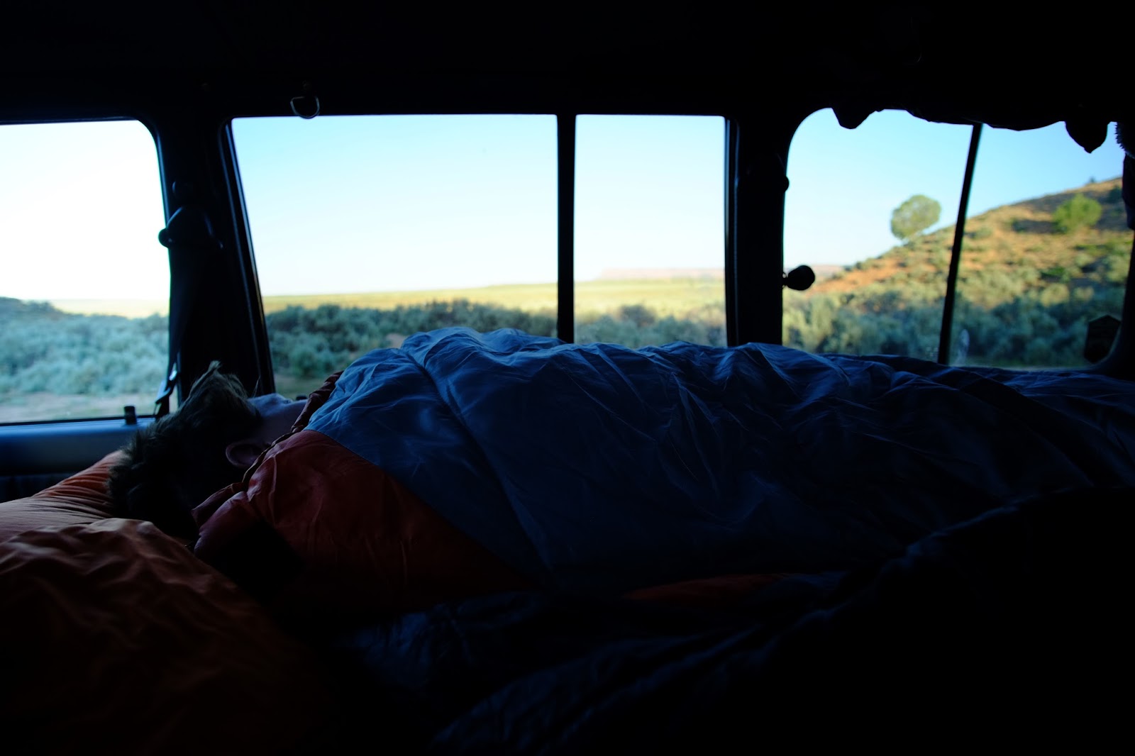 The wind died down as we got out of our sleeping clothes and dressed outside the truck. There’s something about standing naked on a moonless night in the destroyed camp of the Valley of the Gods that in which we slumbered only moments before. Puny human; a forced perspective. We stowed our clothes bag inside what little room was left on the sleeping platform now packed in haste.