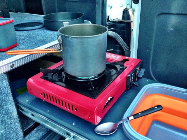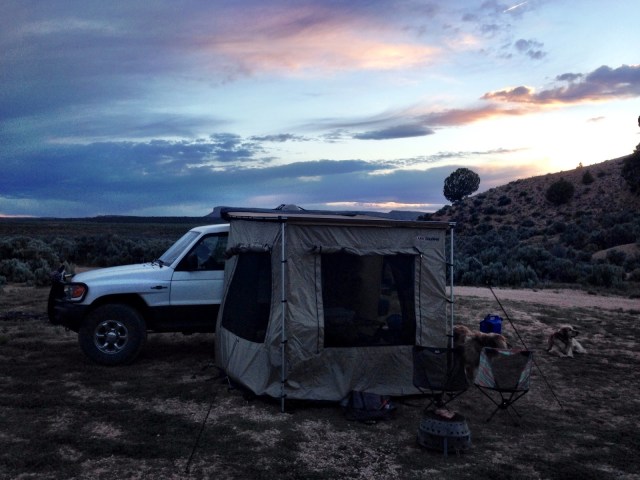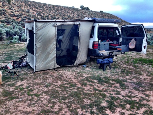 We tried out our newest kit, an ARB 2000 awning with a tent room. With the interior of the Monty converted to a sleeping surface and the rear drawer system providing a food prep and kitchen with a stove and sink, the tent addition rounded out our needs for a place to relax, change and eat and for the dogs to sleep. It was perfect.