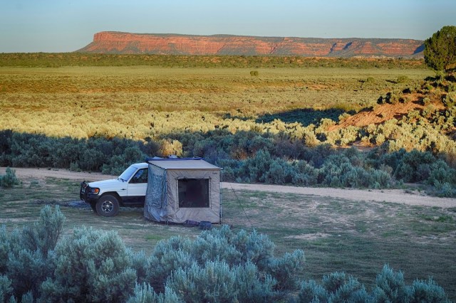 We looked at maps and decided we’d press on to Monument Valley despite the Montero’s mysterious overheating (which didn’t happen for the rest of the trip), and decided to drive past Kanab on 89 to Kitchen Corral Point where there’s dispersed camping.
