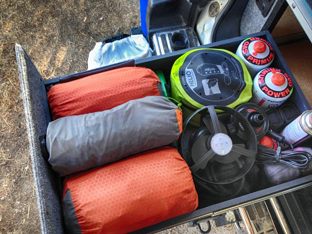 Our gear inventory from previous builds compliments this very well and we’ve added a Helios pressurized water system completing the little kitchen.