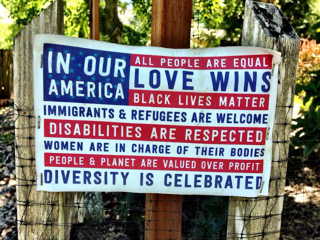 Saturday morning’s drive out of that canyon got us on the road to Eugene, going through Oregon’s geographic schizophrenia. On our way through Burns we saw a too-familiar Trump-Pence campaign sign, this one as large as a garage door that someone had tagged across its face, “Traitor” in big, black angry letters. If you’re not familiar with Burns look up that little fiasco involving a standoff at the Malheur Wildlife Refuge. I didn’t stop for a picture.