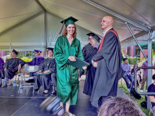 And there it is before us all, a milestone about to be recognized. I watched the graduates mount the stage and saw that same oh shit look on many of them. I wondered if I’d see it surface on Katie’s well-controlled visage as she graced the stage and accepted her diploma cover for her new degree in Architecture. She’d make a good poker player.