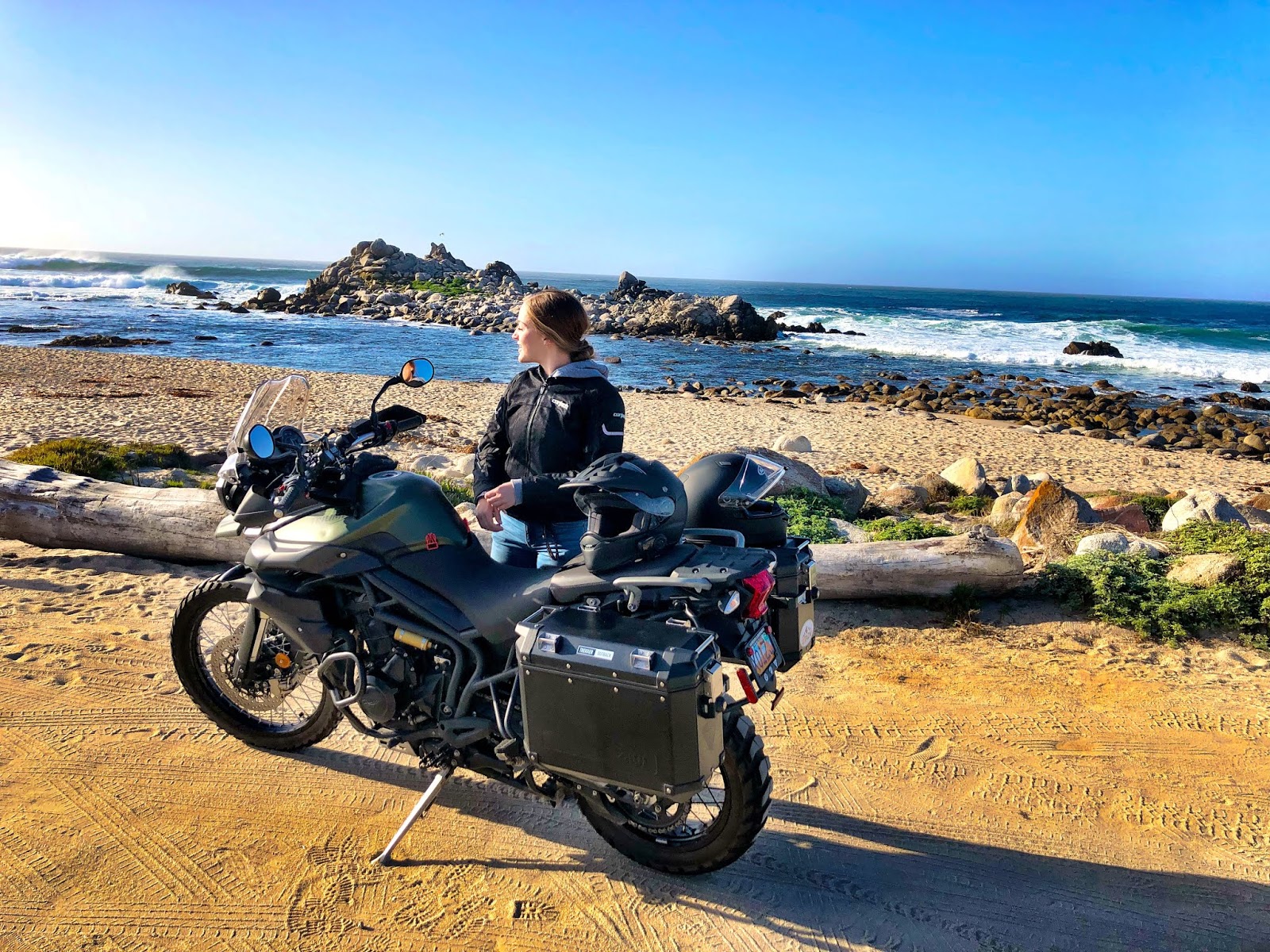 Friday afternoon we rode Ocean View Boulevard through Pacific Grove on the Tiger, amping up Addie’s anticipation.