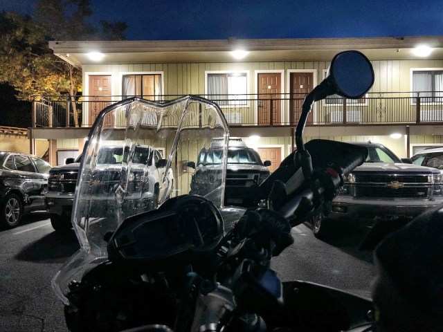 Tuesday morning after checking out and a spinach, feta and egg white wrap and a tall Pike at Starbuck’s, I lit at Seaside Powersports at 0900 to try to be the first into their service lineup. I was quickly turned away, indicating there wasn’t an opening until Wednesday. They wouldn’t even look at it. The manager of the store did and offered his opinion and tried to hook me up with a shop in Fresno, but I knew the Tiger would be alright, backed up with the fact that I had coolant and a funnel tucked away in a pannier just in case things went pear-shaped.