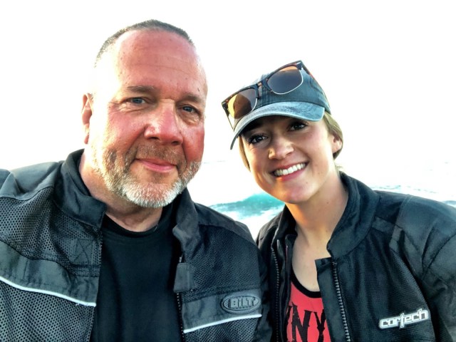 We took the backroads back to Monterey taking us through San Juan Baptista, picking up 129 through some gentle twisties to Watsonville where we stopped for burgers. It was amazing to watch her in my mirrors and see her confidence gain while she sorted out her new ride. It was terrifying to watch her in my mirrors as we got on Highway 1 and fought the gale force winds coming off the coast. I throttled back from the highway speed since I was getting tossed around so much while she stayed solid on my right, her eyes smiling through her visor. It was good to see her this happy again.