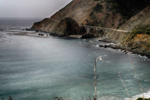 While the Bixby Bridge seems to garner all the the attention on the PCH, my favorite has always been the double arch bridge of Big Creek. We have at least a dozen pics from this vantage point with our kids, with our bikes, with our kids and our bikes. Technically, it’s a three-arch bridge with its two demi-arch side spans, but who’s counting.